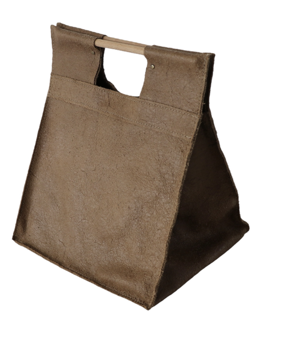 Handtas van rundleer met keuze tussen beukenhouten of bamboe handvaten.